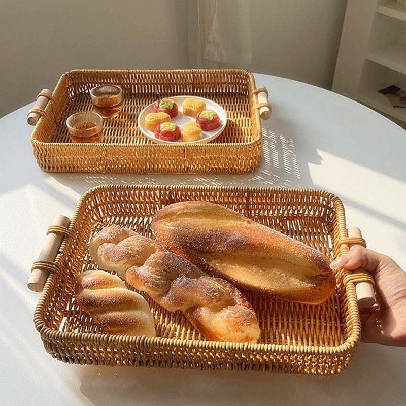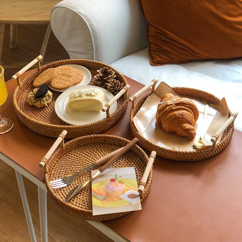 日本式客間トレイ茶盤家庭用果籠パン皿零食籠模造藤編テーブル収納籠結婚式皿