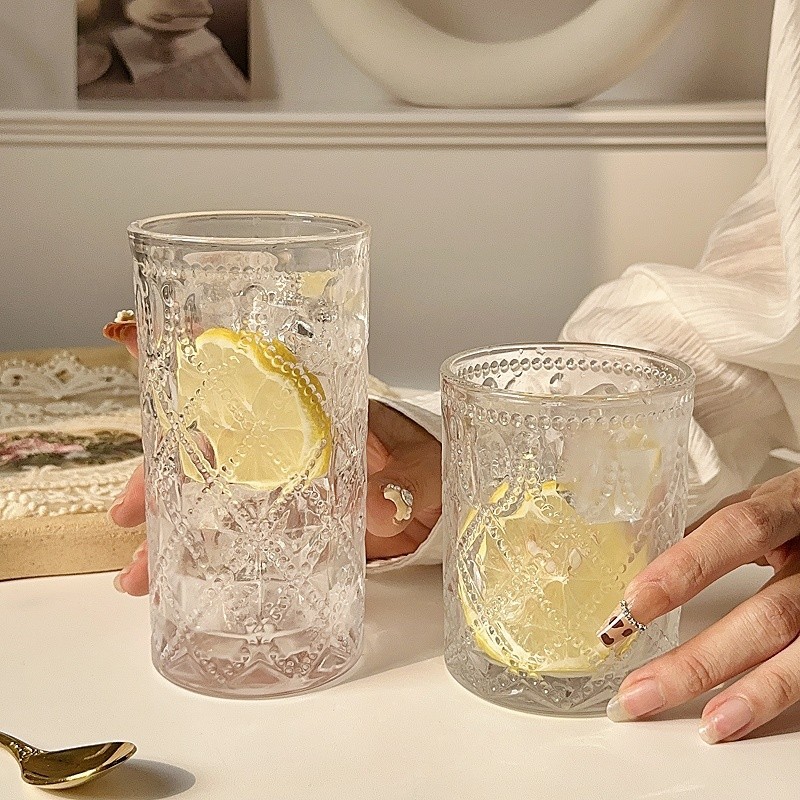 ネットレッドins北欧風復古レリーフグラス田園風牛乳コップミルクティージュースコップビールコップ