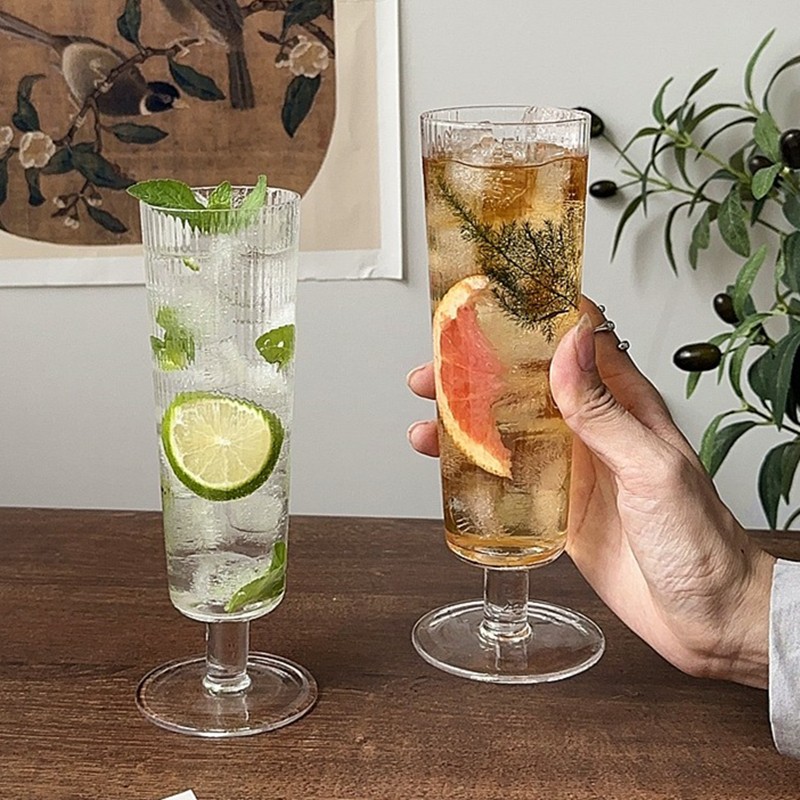 小衆ins風レトロ縦紋高足杯アイスアメリカンコーヒーカップ冷たい飲み物カップ気泡カップカクテルカップ