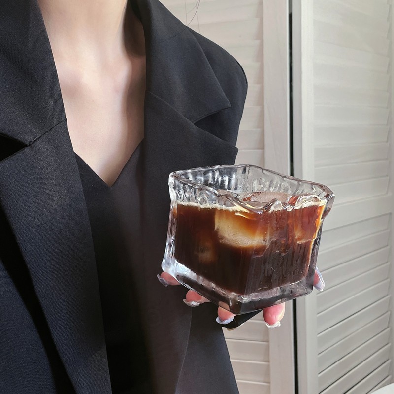 大衆デザインinsレトロ角ガラスラテコーヒーカップ氷河ウイスキーカップ冷たい飲み物カップアイスクリームボウル