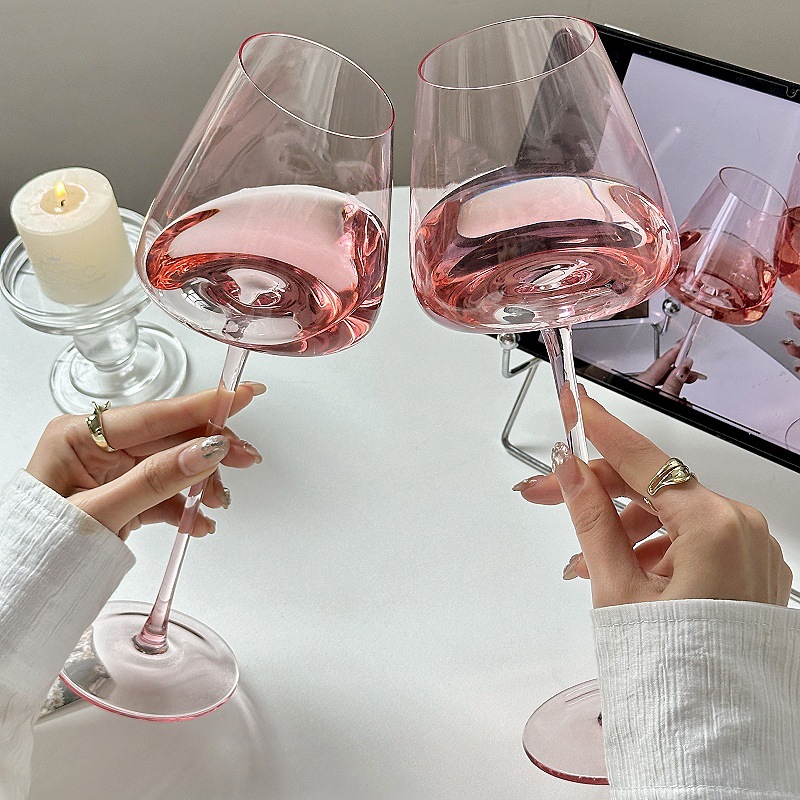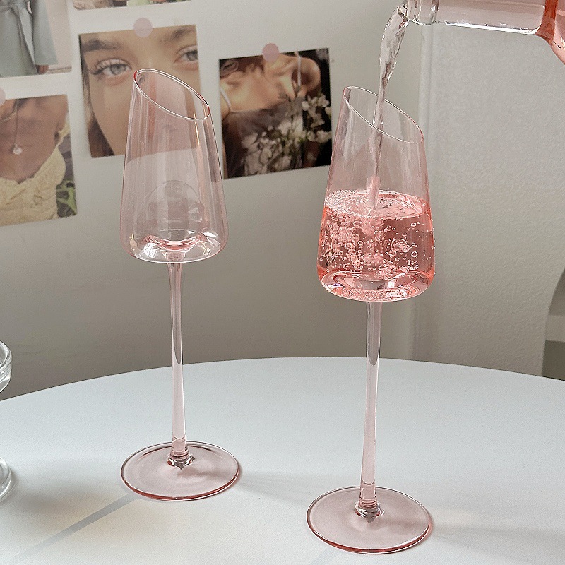 高級ピンクワイングラスins風高颜値家庭用クリスタルシャンパンカップ斜口高足カップ