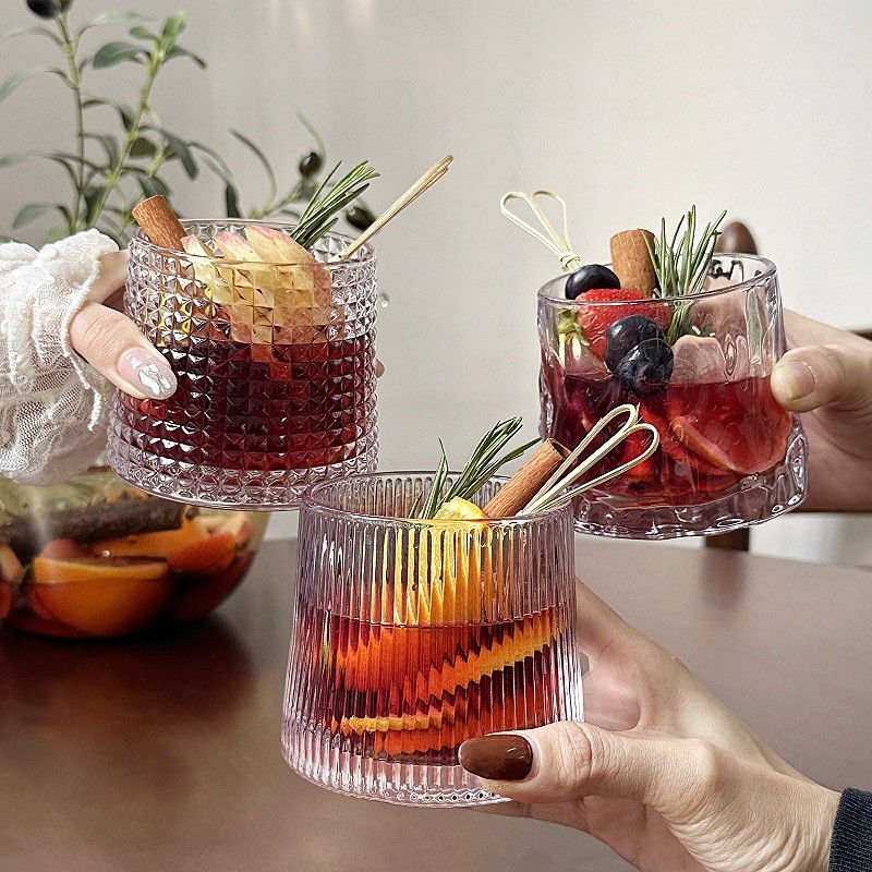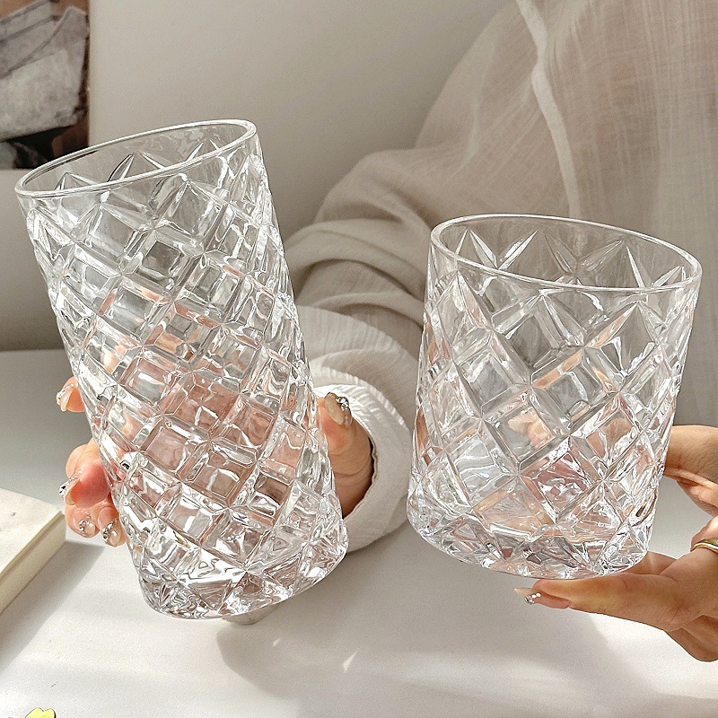 北欧ins風網格子グラス家庭用レリーフコップウイスキーグラスジュースコーヒーカップ冷たい飲み物カップ
