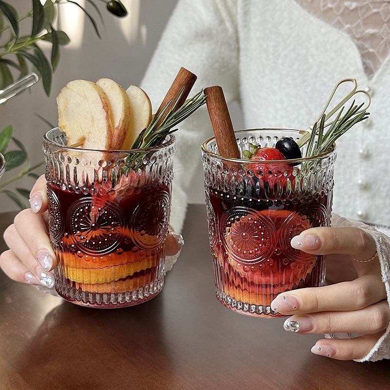 煮熱ワイングラス太陽花レリーフグラス家庭用女性クリスマスins風復古ワインカクテルカップ