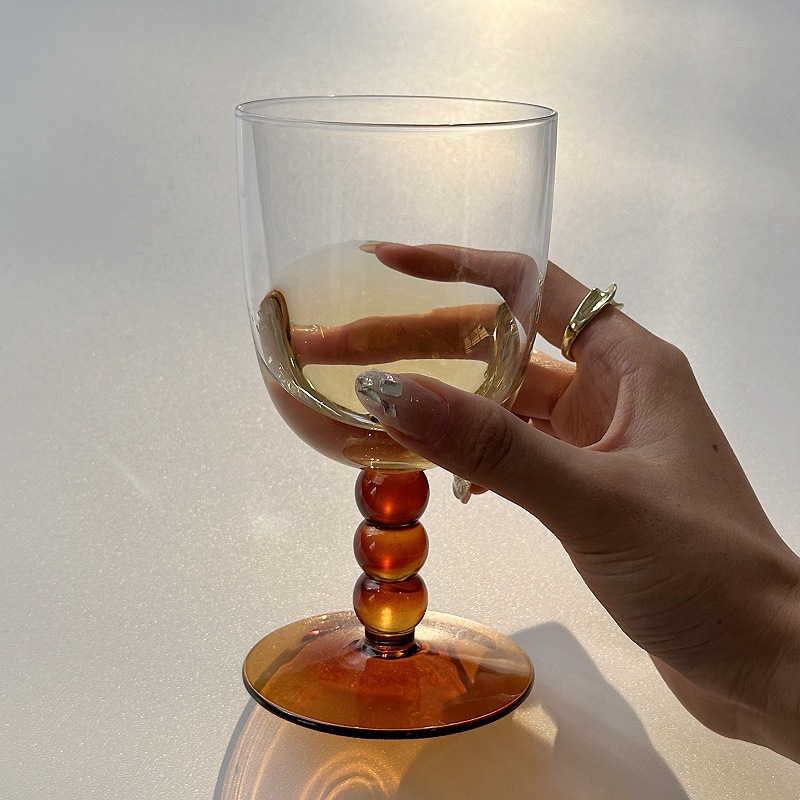 フレンチレトロinsカレー色三連珠小衆デザイングラス高足カップ高級感シャンパングラス