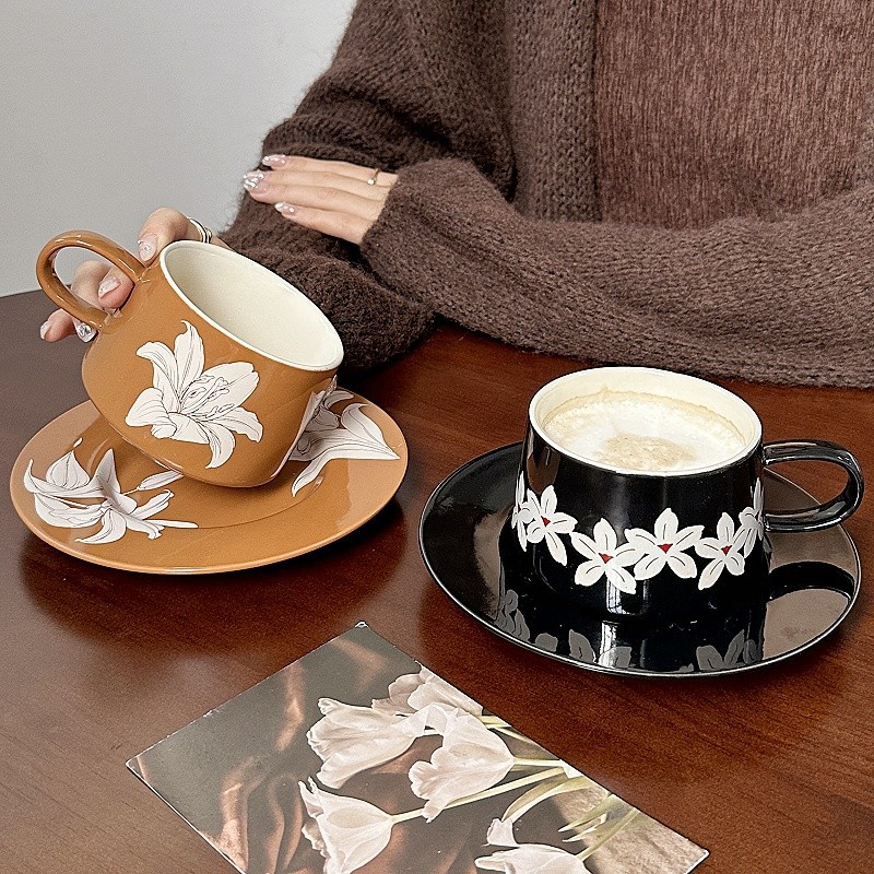 レトロな大衆杏カフェチューリップコーヒーカップセット家庭用セラミックラテカップ中古高級昼寝