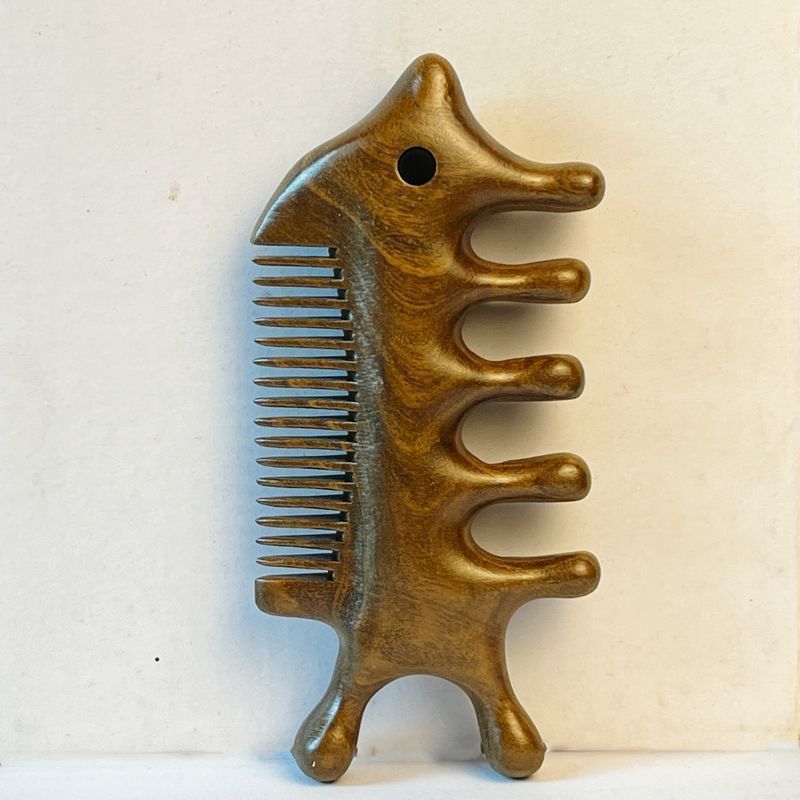 マッサージコーム、ポータブル経絡コーム、天然白檀コーム、ヘッドマッサージコーム、厚みのある広歯ゴールデンシルクサンダルウッド