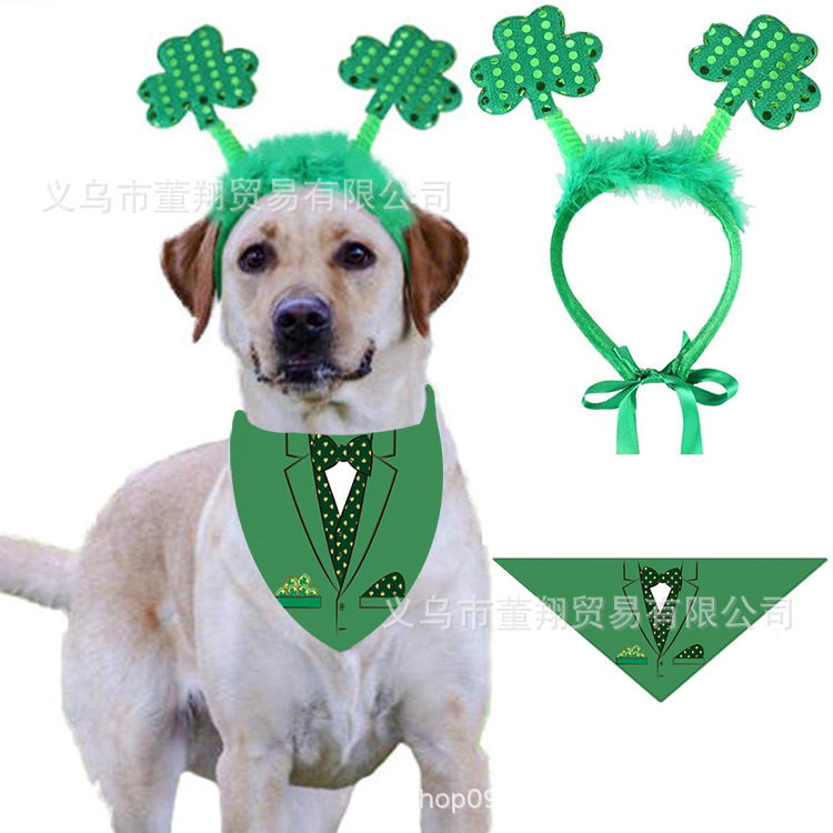 新しい三角タオル聖パトリックの日犬のマフラーペットアイルランドのカチューシャペットのよだれ飾りペット