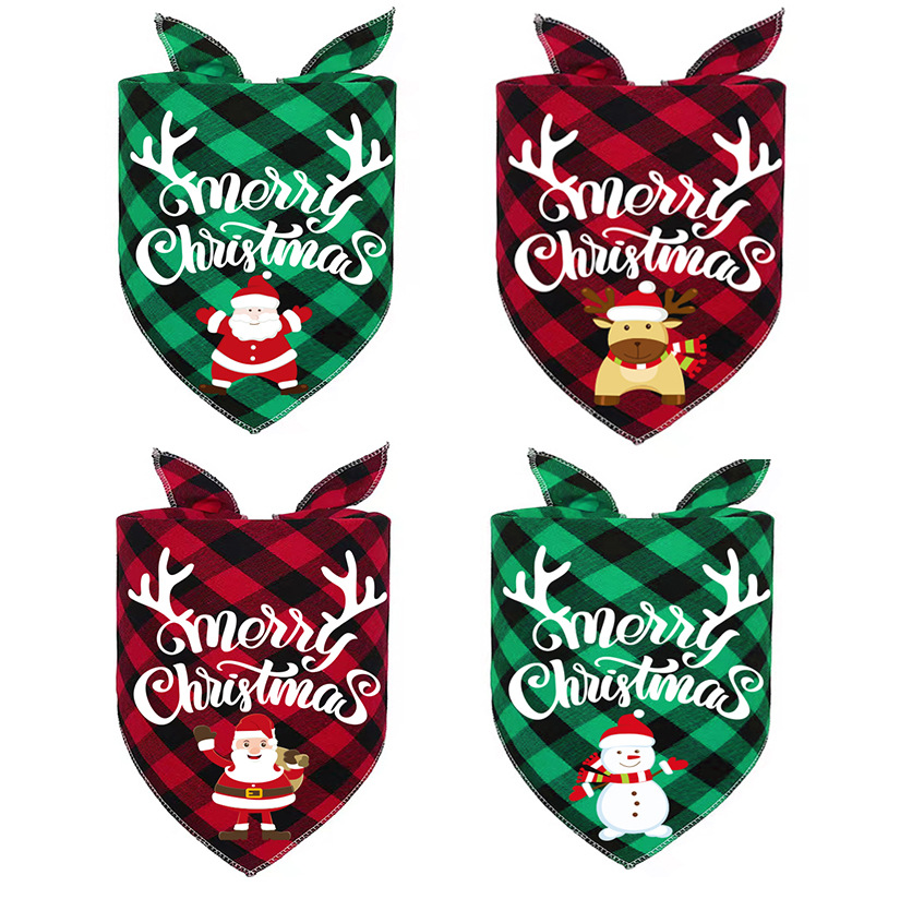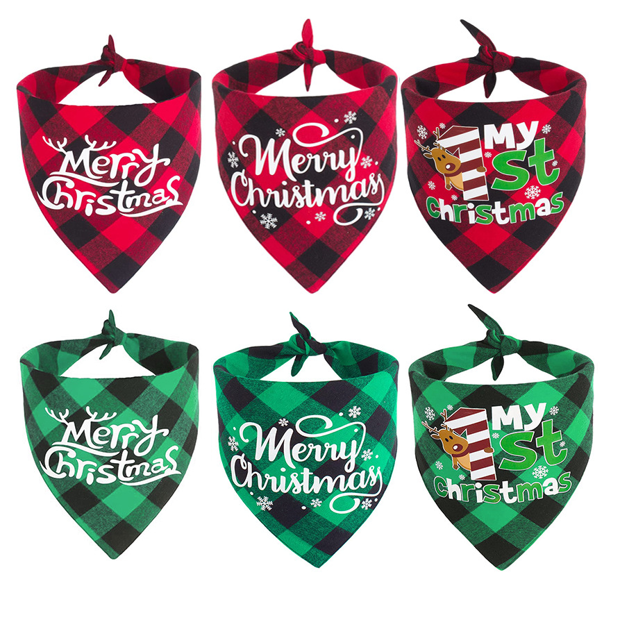 メーカー直販ペットクリスマス格子三角タオル犬よだれタオルマフラーペットクリスマスパーティー装飾用品