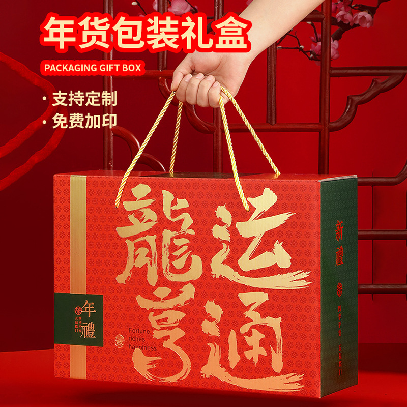 萌え色の年用品のギフトボックスのハイエンドの手提げ新年の春節のギフトボックスのナッツの特産品の空の箱の竜年の包装箱
