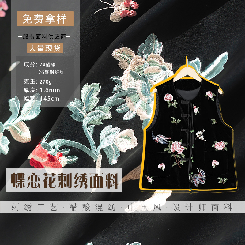 重いポンドの高密な三酢酸の刺繍の布地のバタフライの花の新しい中国式の小さいシャツのチャイナドレスのワンピースの国潮の刺繍の生地