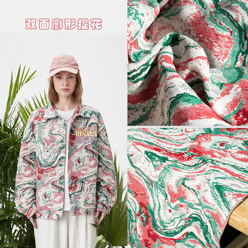 衝突色ジャカード両面郭形生地オリジナルレトロ立体刺繍立体襟付きジャケット服装生地