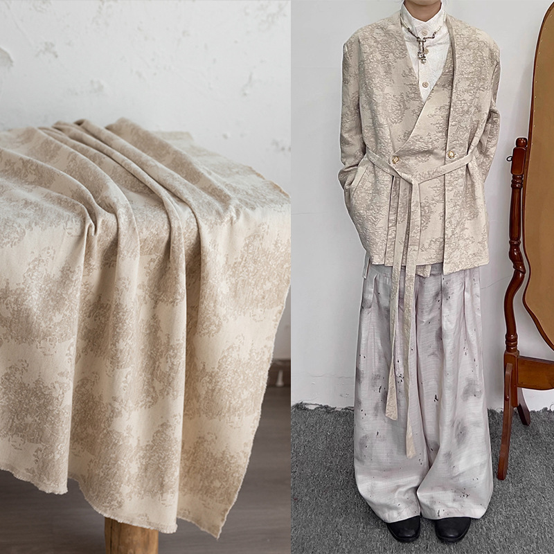天糸綿麻ジャカード生地暗紋麦穂中国風漢服チャイナドレス服装デザイナー生地
