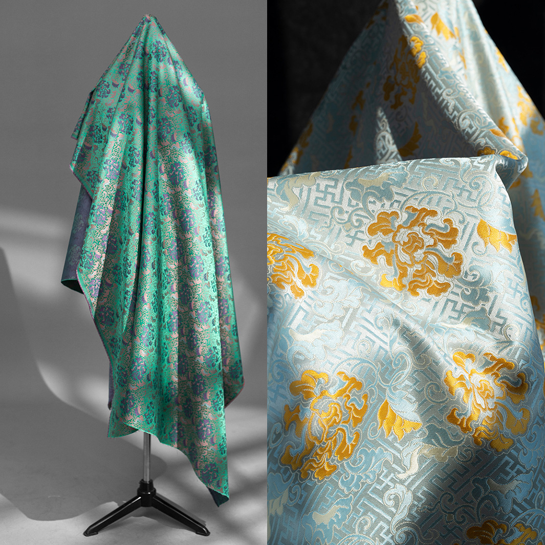 両面波平織りジャカード生地中国風漢服チャイナドレス馬甲復古男女服装デザイナー生地