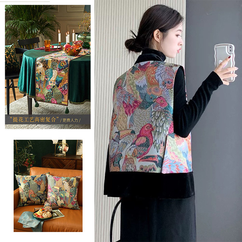 国潮七色オウムジャカード錦織生地コート馬甲スカート抱き枕は宋錦ジャカード生地に似せている