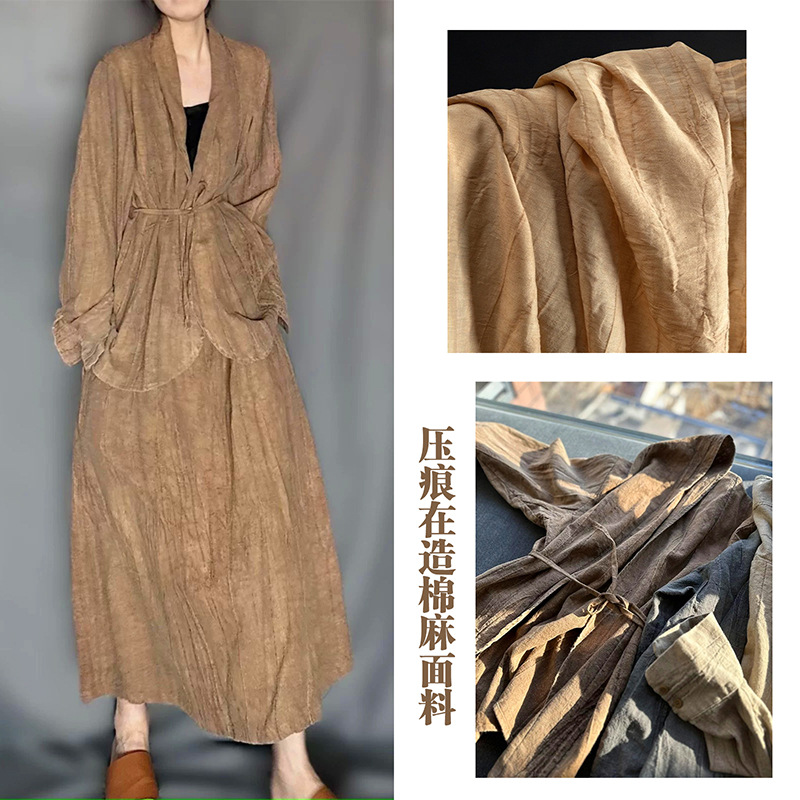 圧痕再生綿麻生地植物染めレトロしわシャツワンピースバッグクリエイティブ服装デザイナー生地
