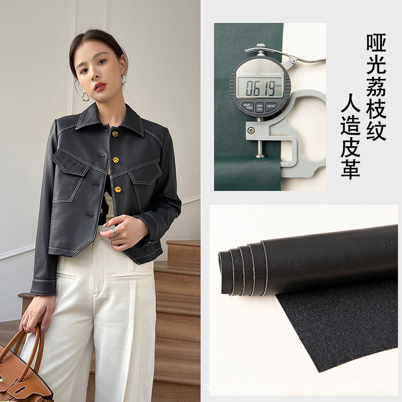 マットライチ人工皮革生地柔らかい抗シワpu模造皮生地小羊皮服コート服装生地