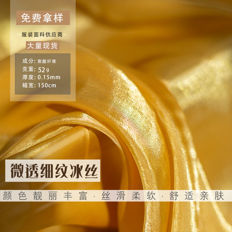 黄金色水晶光沢感欧根紗暗号化滑らかな薄いネット糸生地ドレスデザイナー生地