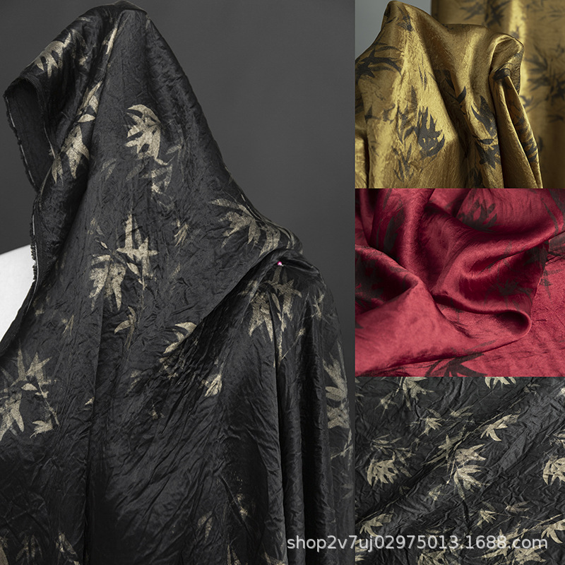 天糸筋理シワ生地の樹葉紋シワナイロン漢服シャツワンピースデザイナー生地