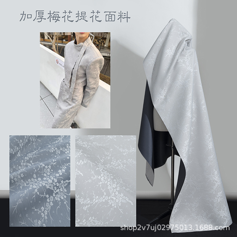 厚い梅ジャカード生地ブルーグレークリエイティブ中国風ファッション抗シワコート服装デザイナー生地