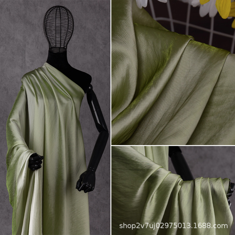 蛍光緑瑠璃酢酸亮糸仙気水晶シルクサテン生地ドレス光沢亮面デザイナー生地