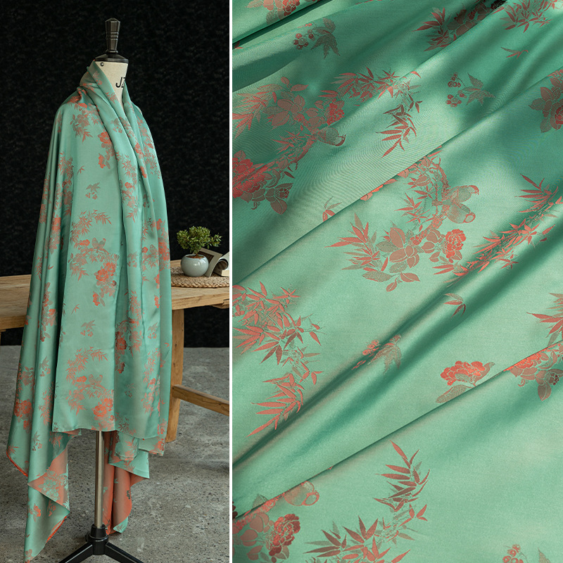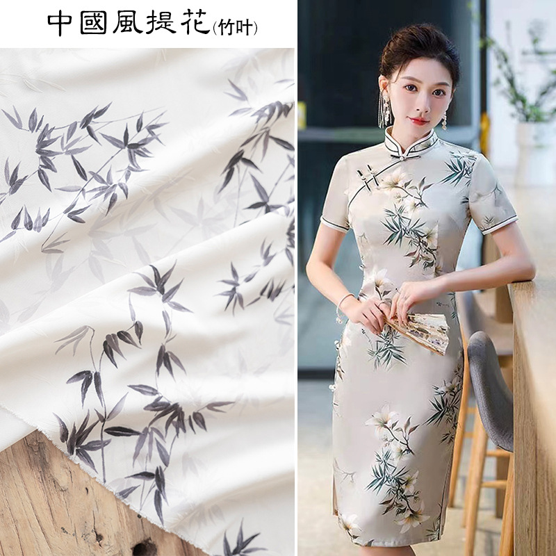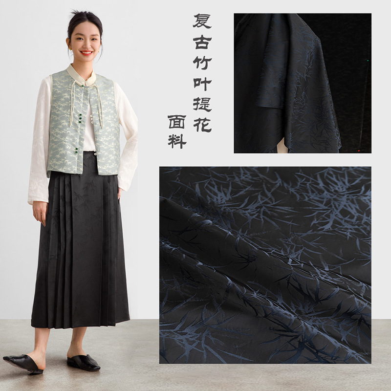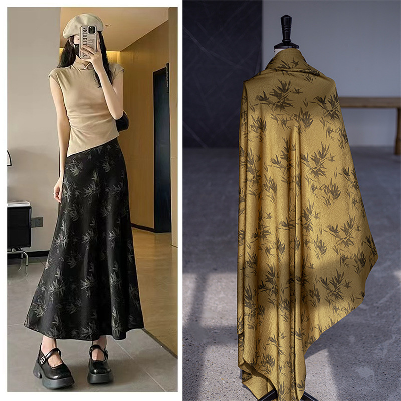 酢酸竹葉古銅黒金色絹織物生地中国風垂順シャツスカート服装デザイナー生地