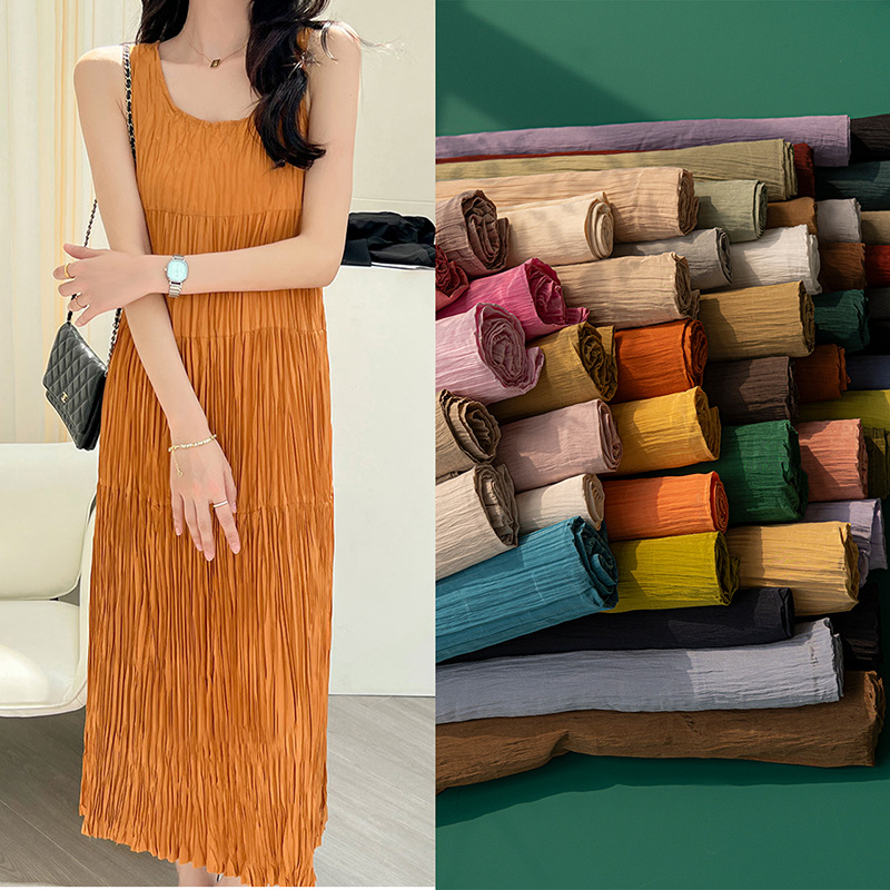 天糸混紡シワ筋理生地通気性が薄い日焼け止め服ワンピース半身スカート服装デザイナー生地
