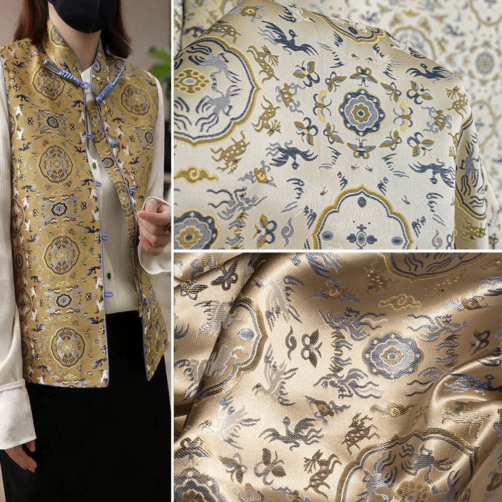 鶴鹿同春宋錦シミュレーションシルク錦織ジャカード生地国風馬甲チャイナドレス漢服装デザイナー生地