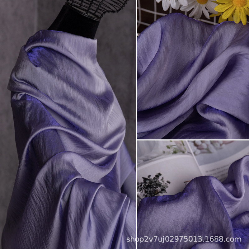 紫色の酢の糸の瑠璃の糸のサテンの神の水晶の糸のサテンの布地のウェディングドレスの光沢の明るい顔のワンピースの生地