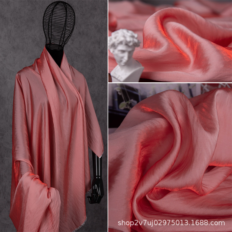 ピンクの超明るい光感水晶シルクサテンファッション服装生地防水暗号化は鏡面の明るい光の記憶生地に似ている
