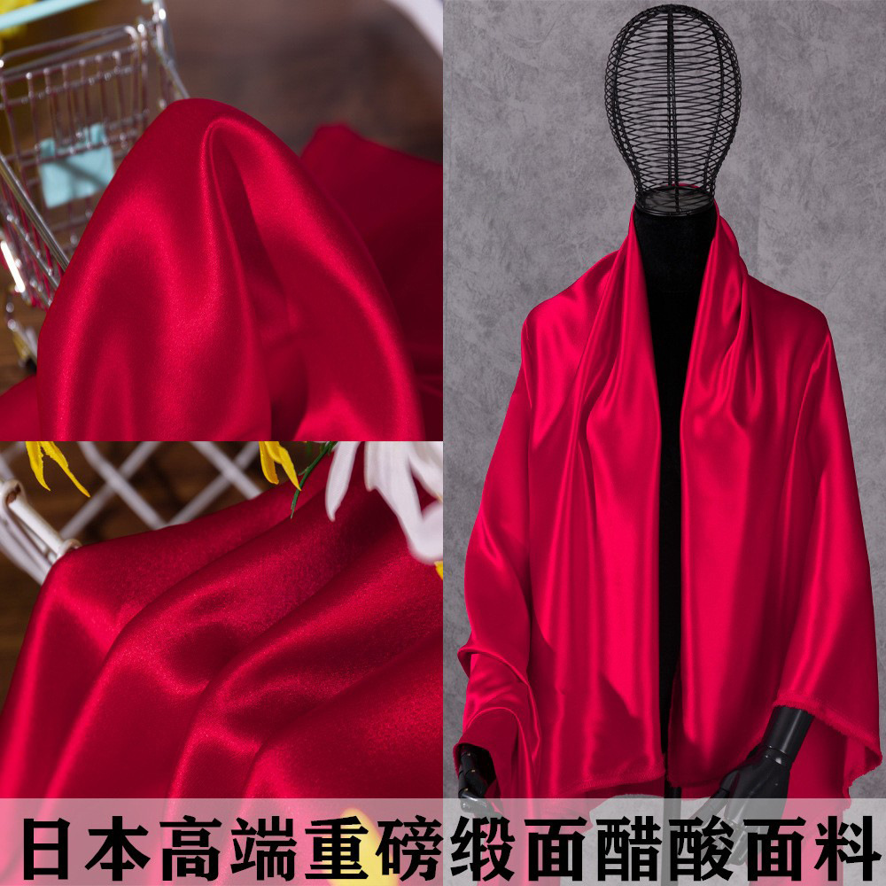 鮮やかな赤色の日本製三酢酸サテン生地、高品質のシルクのような光沢のあるドレスやイブニングドレスの生地