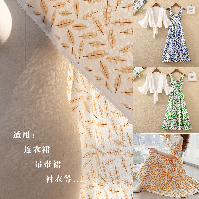 高級清新小砕花スカート生地ins風デザイナー木の葉花形ワンピーススカートシャツプリント生地