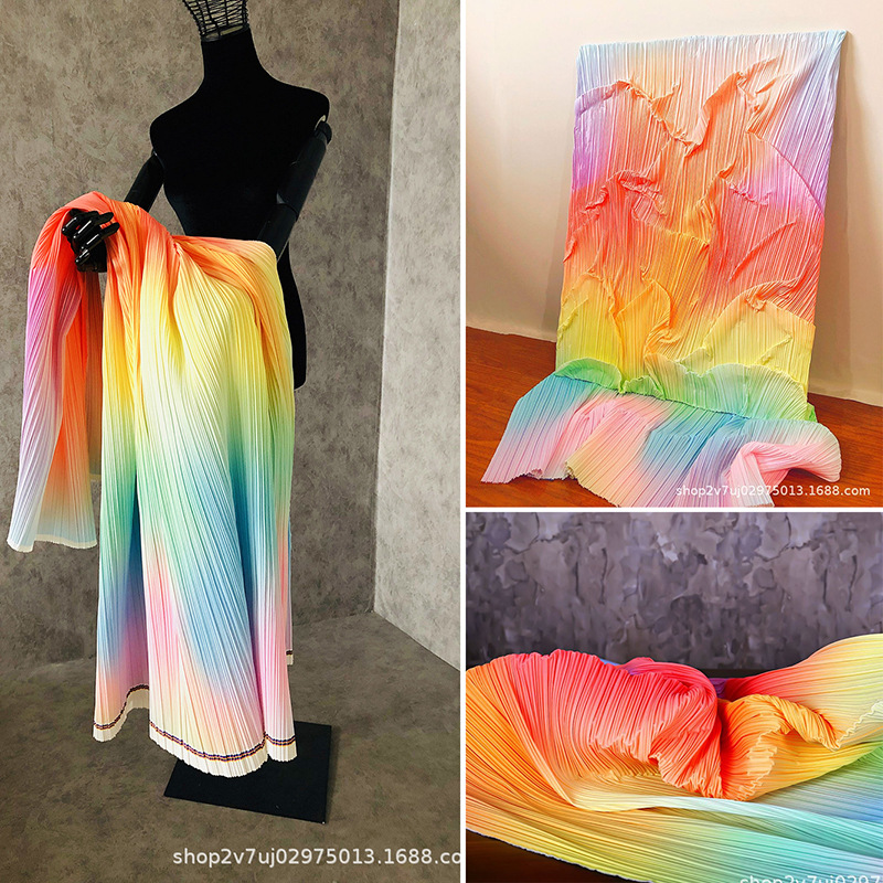 三宅の一生のしわの布地の筋理の百のしわのグラデーションの形の創意は手作りの虹の装飾画の背景の布を改造します。