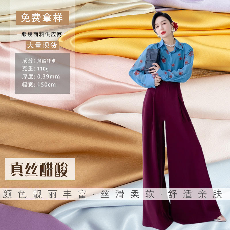 日本酢酸三酢酸サテン生地抗シワ通気ワンピースチャイナドレス服両面シルク生地