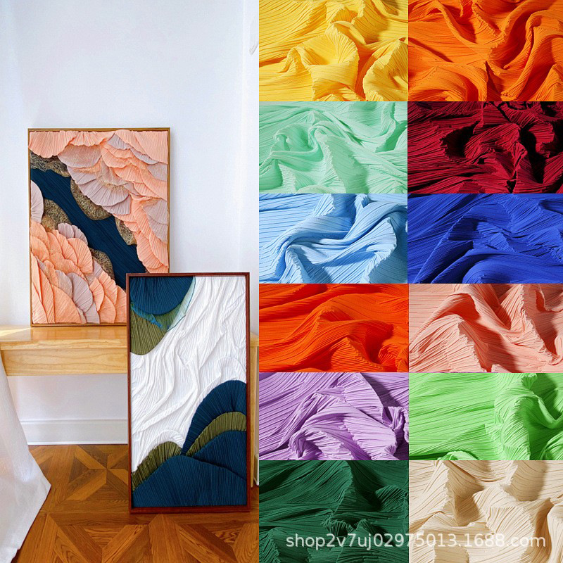 三宅一生シワ生地百シワシワ筋理改造型黒白色diy手作り装飾画生地赤