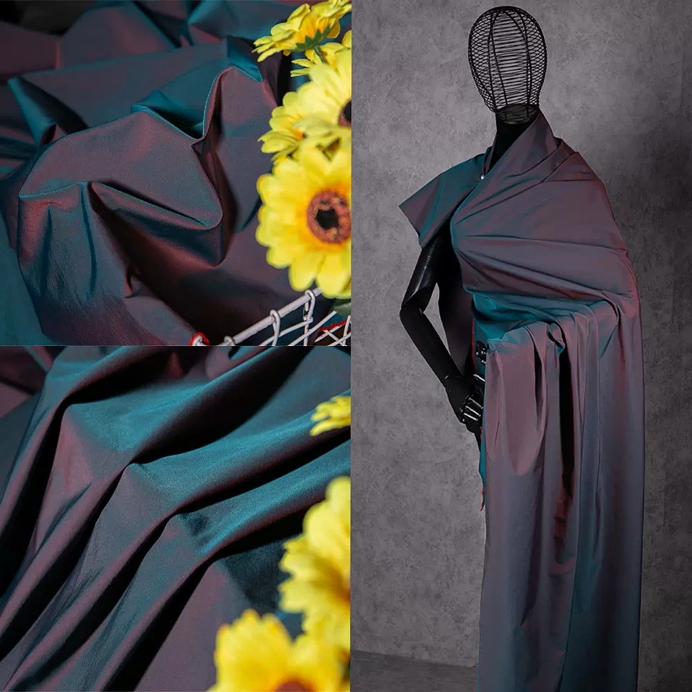 変色龍グラデーション色風衣生地二色幻彩コートズボン生地光沢感色織デザイナー生地