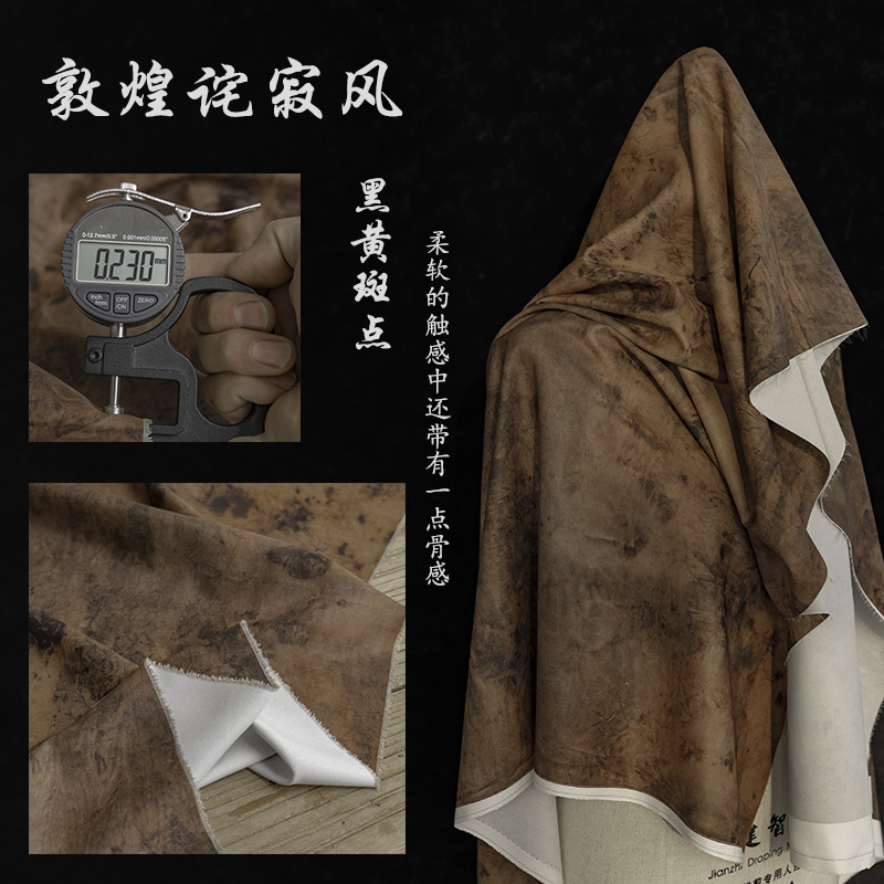 黄色と黒の斑点のある敦煌わびさびスタイルの植物染めプリント中国風シャツ、キュロット、バッグ、衣類デザイナー生地