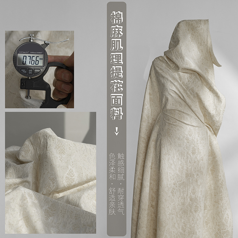 米白色綿麻筋理ジャカード生地立体郭形スーツコートワンピース