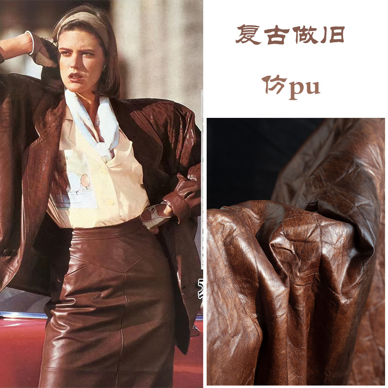 茶色のレトロな古い革は皮puの筋肉の紋様の革のバッグのジャケットの皮のズボンの服装のデザイナーの生地をまねます。