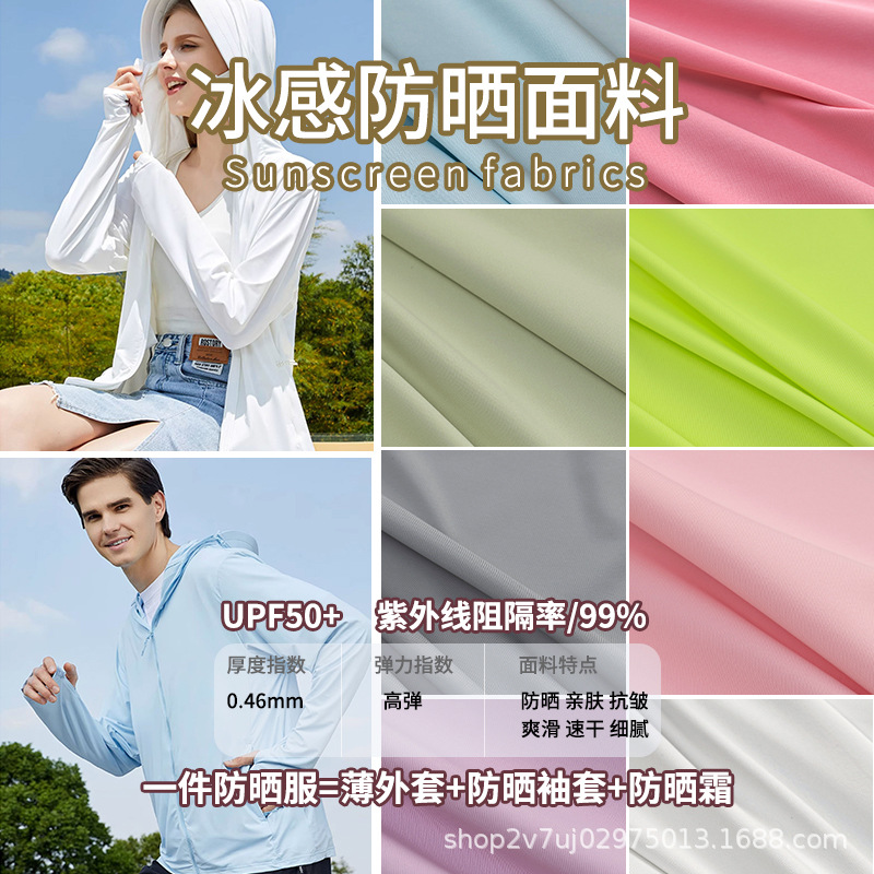 冷たい日焼け止め生地UPF50紫外線防止通気速乾高弾日焼け止め服氷袖tシャツパジャマ生地