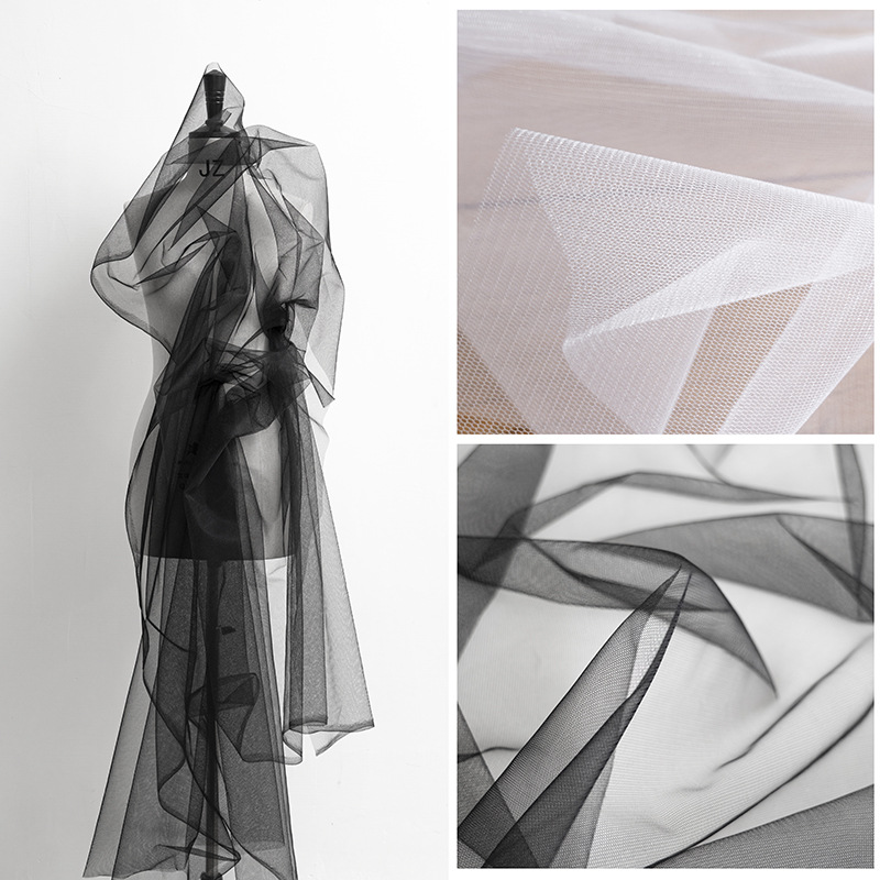 広い衣類黒と白の硬いメッシュ生地透明チュール結婚式手作りウェディングスカーフ特別価格生地