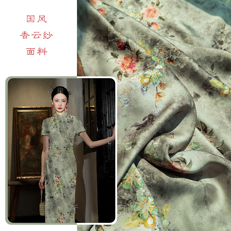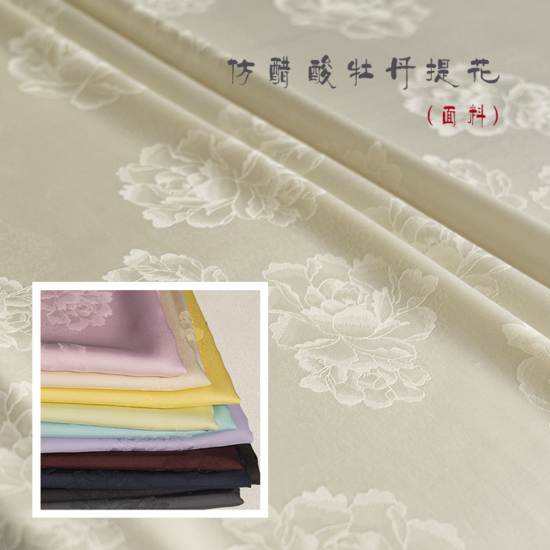 夏牡丹ジャカード生地模造アセテートサテン滑らかなシルクチャイナドレスキュロット服デザイナー生地