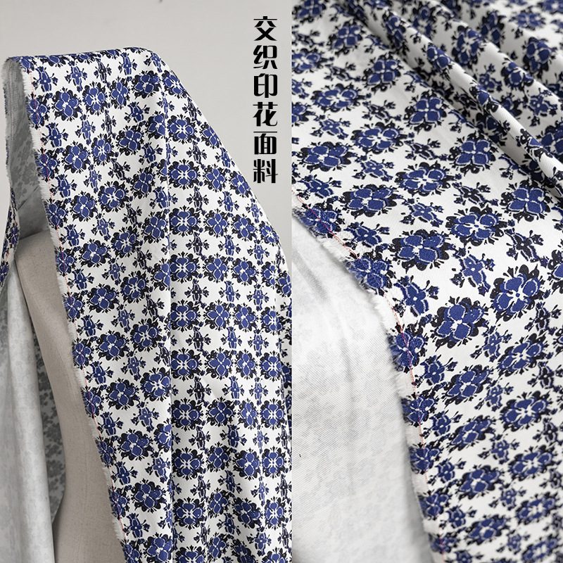 シーブルー青と白の磁器綿プリント生地レトロ抗しわドレスジャケットパンツ衣類デザイナー生地