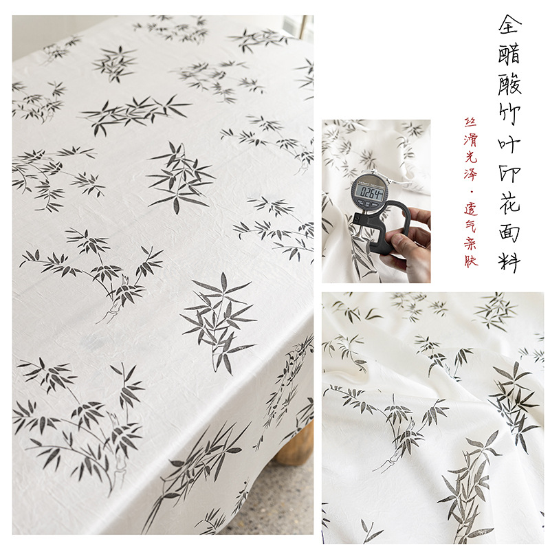 ホワイト 100% アセテート生地竹の葉プリントサテンドレープチャイナドレスシャツ衣類デザイナー生地