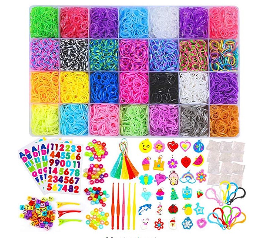 32格の虹の輪ゴムのブレスレットのおもちゃは手作りの編み機のdiyの手作りの2200本のセットのアクセサリーを詰めます。