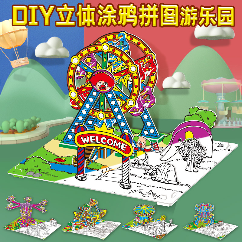 3d立体パズル遊園地幼稚園手作り落書き児童知育玩具3-6歳六一クロスボーダー卸売り