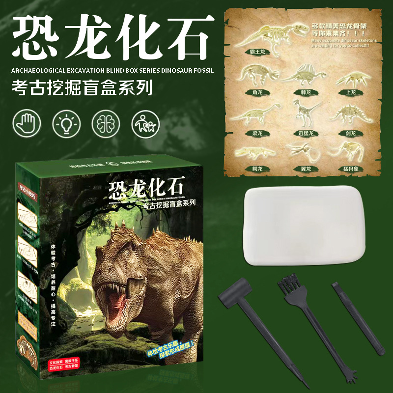 クロスボーダー児童考古玩具発掘玩具手作りdiy掘削宝恐竜化石考古恐竜ブラインドケース卸売り