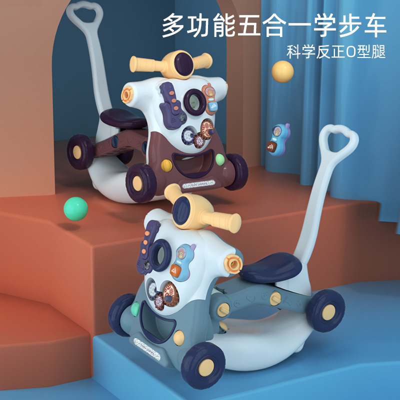 赤ちゃんの手で歩く車を押します。