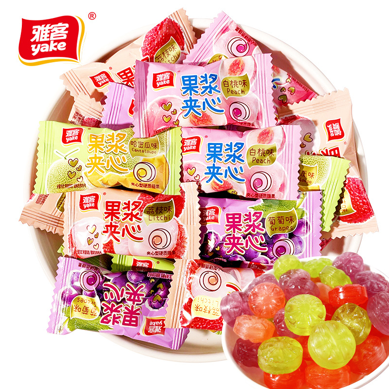 雅客フルーツパルプサンドイッチ硬糖果物砂糖白桃レイシ味サンドイッチ砂糖ばら積結婚喜糖結婚キャンディー卸売り