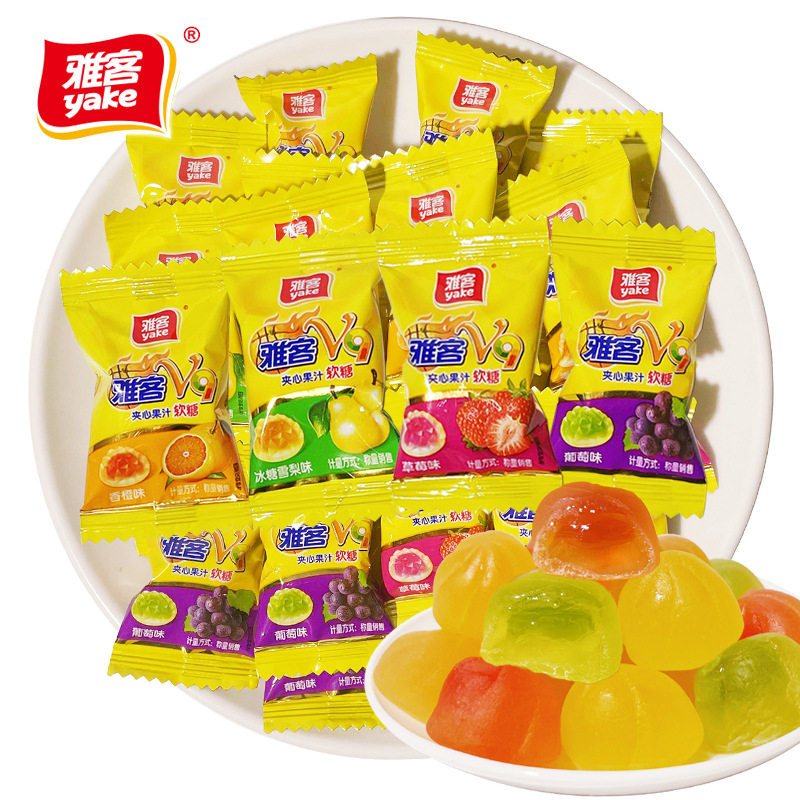雅客V9サンドイッチジュースソフトキャンディーvc爆糊グミqq糖ばら積結婚結婚喜糖果レジャースナック