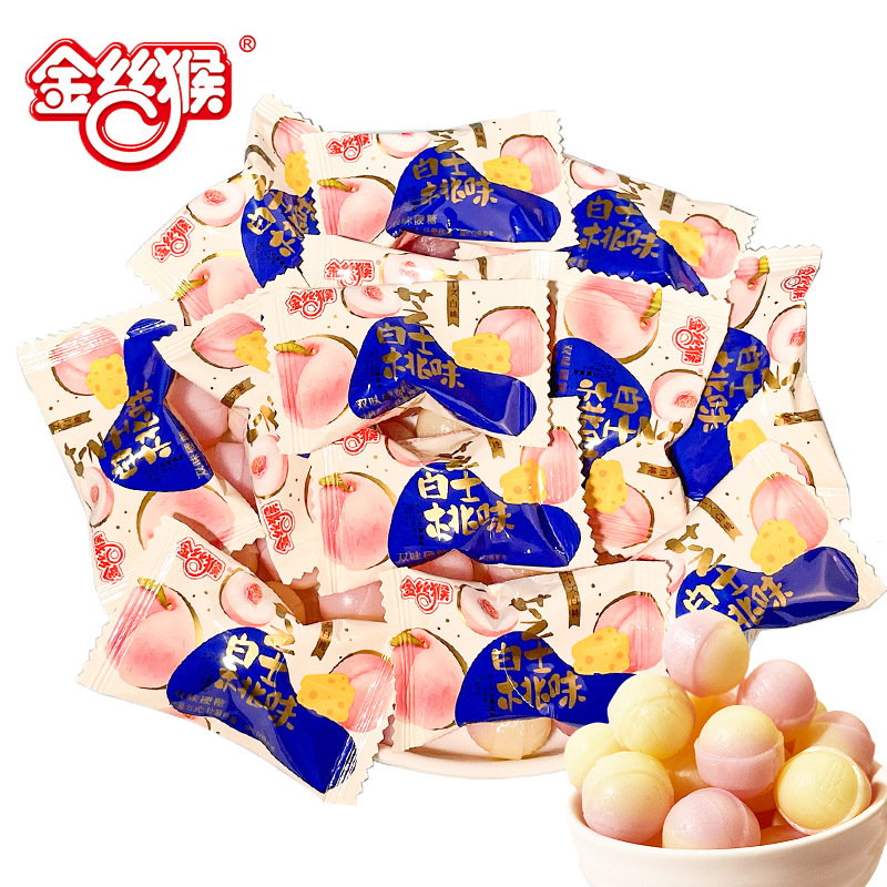 金糸猿白桃チーズ味硬糖双味果物砂糖結婚喜糖網赤レジャー招待キャンディースナック